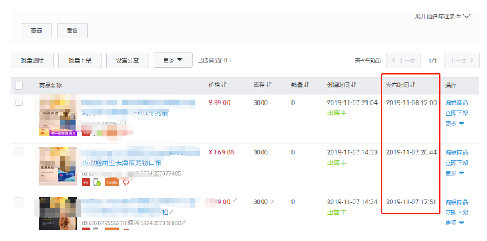②主图影响着我们的点击率,没有一张好的主图,你的标题做的再好,你的资金在多也是没有办法产生成交的,更不用说免费流量了,想要访客,不断的去优化主图一定是你的必经之路,平常一般在修改主图或者标题的时候,没有数据的宝贝是可以随时去修改了,而当我们的宝贝一旦开始有销量就不行了,大家想要去修改主图详情标题的话一定要在产品自然下架后一个小时之内去修改,自然下架的时间就是去千牛后台-宝贝管理-里去查看宝贝上架的时间+7天就是你的自然下架的时间。